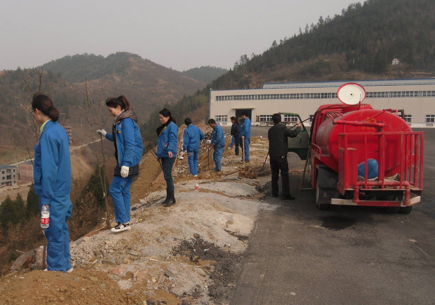 2013年3月16日,神河集團黨總支組織部分黨員、入黨積極分子及后勤人員,在新開發的半掛車生產基地開展義務植樹活動。上午從村上挖樹苗運回,下午挖窩運水栽樹。共植樹1000余棵。